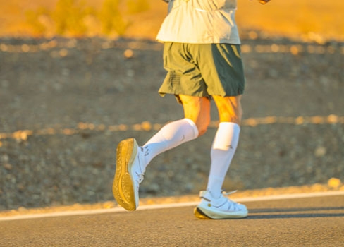 Schlussendlich gab es auch für Sebastian kein Halten mehr. Er wollte persönlich die Erfahrung machen, wie es sich im Ultreya® bei maximaler Hitze auf heißem Asphalt läuft. Ganz ins Ziel hat er es nicht geschafft (Schuld war natürlich nur eine Corona-Infektion in der Vorwoche zuvor). Aber zusammen mit dem renommierten Biomechaniker Lee Saxby konnte er die Aspekte der Biomechanik, deren Einfluß Einfluss auf das Sohlendesign (Uphill und Downhill) sowie Atmungsaktivität u.v.m. unter diesen extremen Bedingungen bewerten.