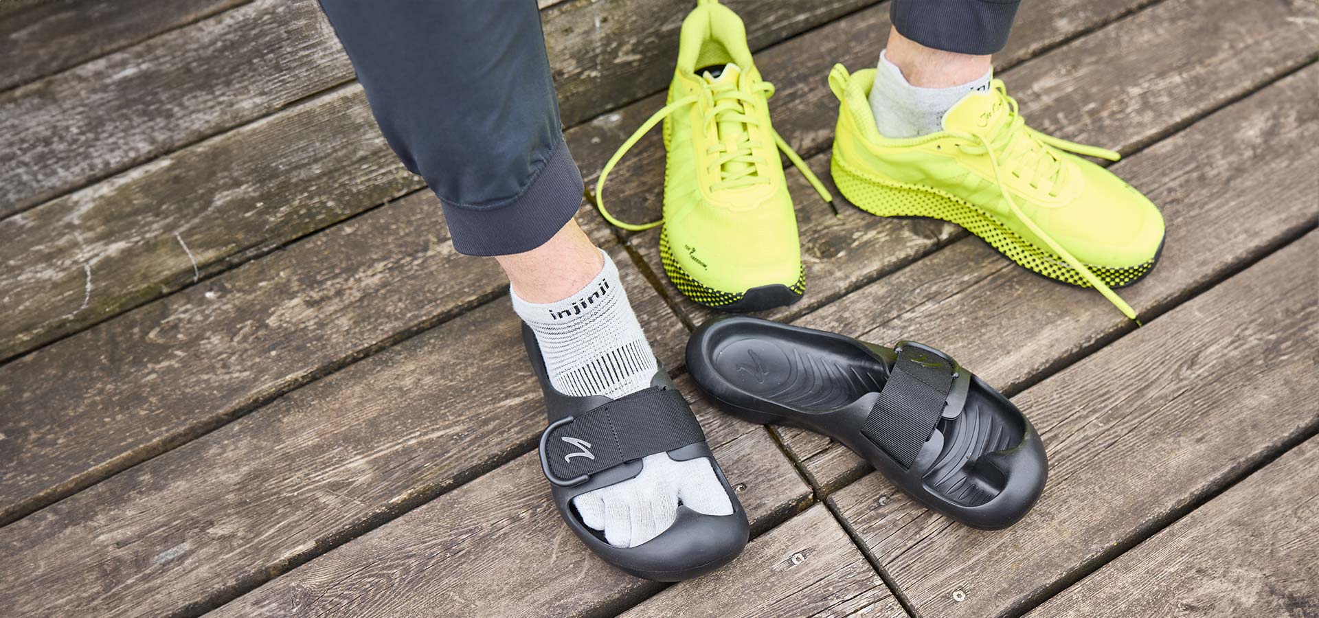 Entdecke unsere neuen Herren Recovery Slides und genieße die Wohltat der Zehenfreiheit und der Wiederherstellung der Fußstruktur nach intensiven Trainingseinheiten und langer Beanspruchung deiner Füße! Mit einer großzügigen Zehenbox und dem Zehentrenner bieten unsere Slides den Sportlerinnen eine natürliche Entlastung und Erholung für ihre müden Füße. Die Zehenfreiheit ermöglicht eine verbesserte Durchblutung und unterstützt die Regeneration der Fußmuskulatur.