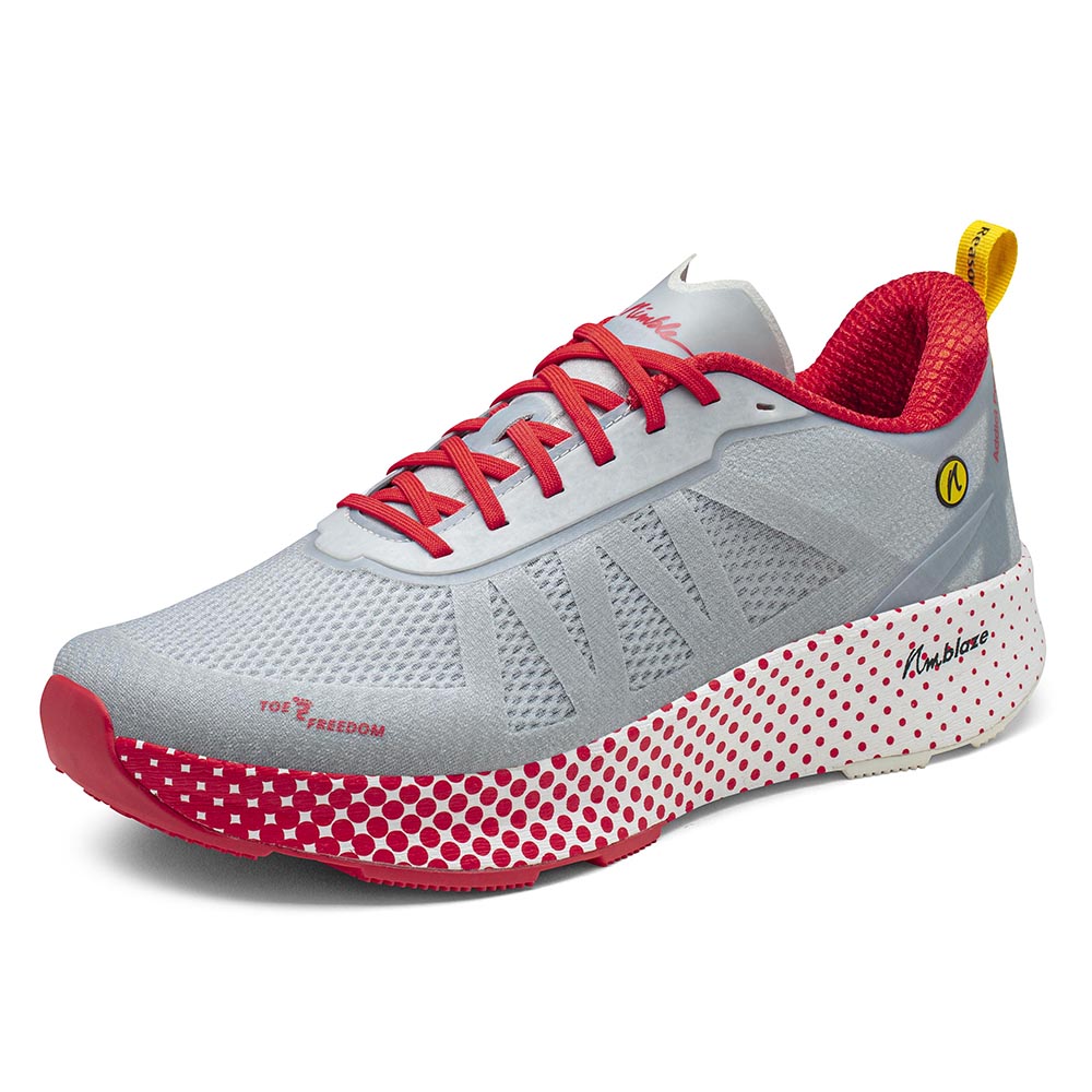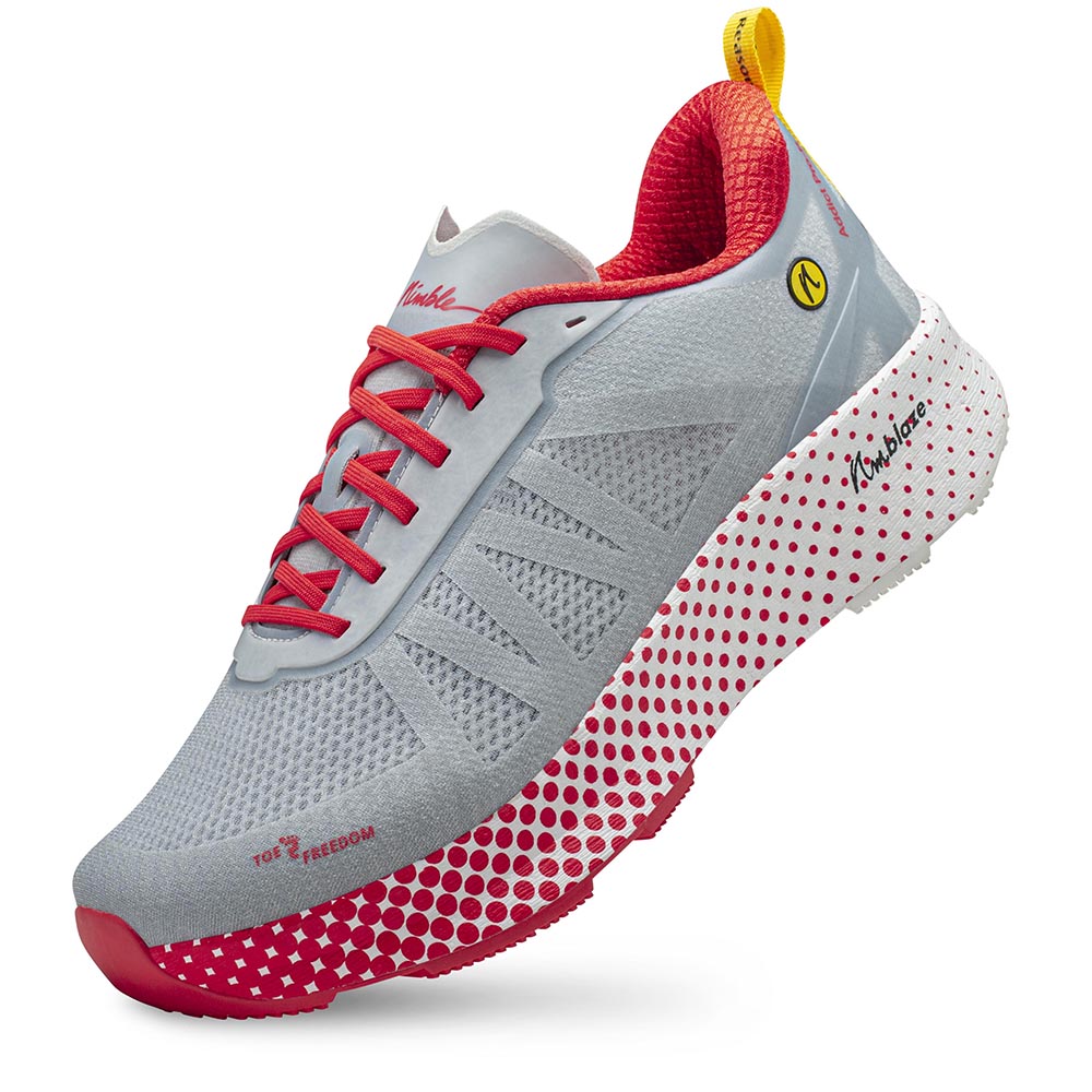 Die Zehenbox mit Toefreedom / Zehenfreiheit des Joe Nimble Addict Pro-R Laufschuh in grau rot
