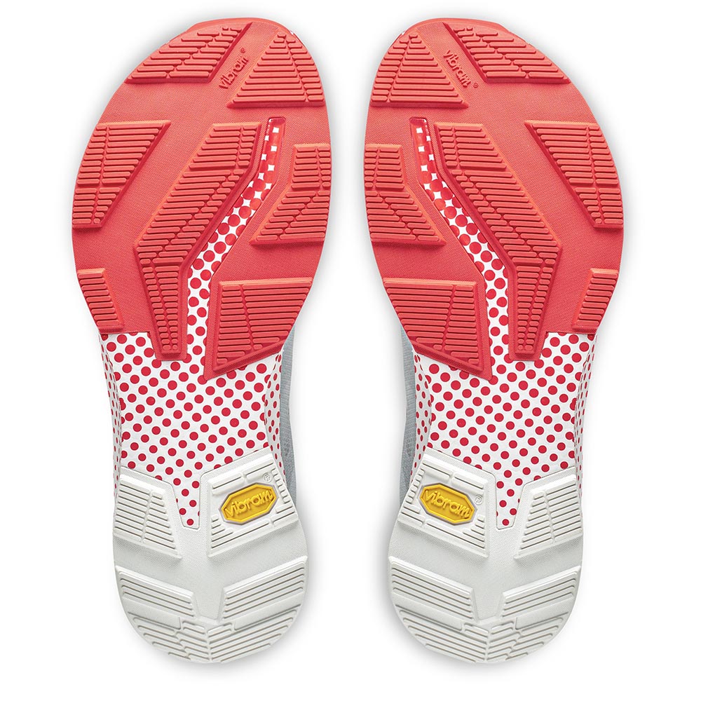 Die Vibram Sohle des Joe Nimble Addict Pro-R Laufschuh in grau rot
