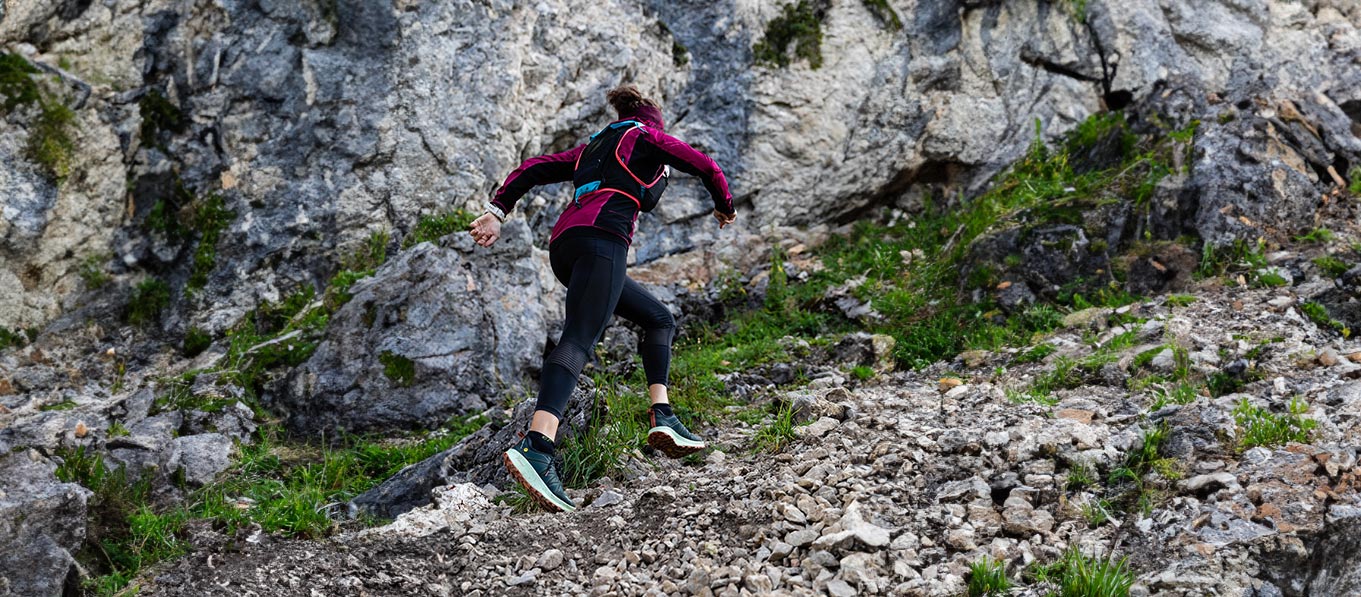 Abhängig von der Beschaffenheit des Trails, hast Du die Auswahl an Modellen mit Sohlen von Soles by Michelin® – für technisch einfachere Trails – oder Sohlen von Vibram®, kombiniert mit unserer ToePilot® Technologie – für technisch anspruchsvollere Trails und Ultra-Trails.
